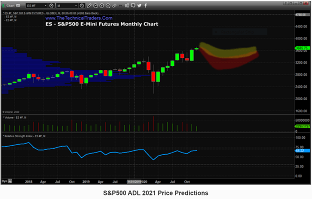 Điều lớn nhất cần nhớ về những dự đoán ADL này là vùng màu ĐỎ gợi ý phạm vi thấp hơn của mức dự đoán ADL và vùng màu VÀNG gợi ý phạm vi cao hơn của mức dự đoán ADL. Do đó, tổng phạm vi này trên biểu đồ (ĐỎ + VÀNG) là vùng giá dự kiến tiềm năng cho năm 2021.