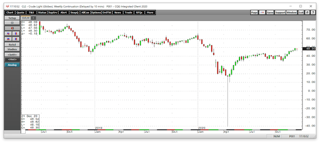 Vào ngày 21 tháng 12, hàng hóa năng lượng đã giảm xuống dưới mức 47 đô la sau khi hợp đồng tương lai NYMEX tháng 1 chuyển sang tháng 2. Các tháng mùa đông có xu hướng là thời kỳ yếu theo mùa đối với dầu thô. Khi bước sang năm 2021, chúng ta nên tiếp tục kỳ vọng vào sự biến động trong thị trường dầu thô tương lai. Trong khi thế giới đang tìm cách rời xa nhiên liệu hóa thạch, dầu mỏ vẫn sẽ cung cấp năng lượng cho những năm tới.