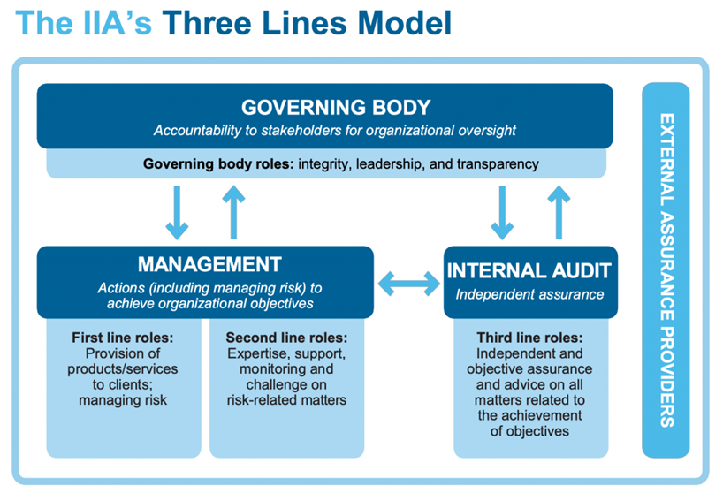 Viện Kiểm toán Nội bộ Hoa kỳ (IIA) đã công bố (20/07/2020) một phiên bản cải tiến của mô hình Ba tuyến Phòng ngự (Three Lines of Defense model) nổi tiếng của mình cho khả năng đảm bảo rủi ro (risk assurance). Có lẽ thay đổi đáng chú ý nhất: không còn gọi nó là mô hình Ba tuyến Phòng ngự (Three Lines of Defense model) nữa. Thay vào đó, hướng dẫn IIA giờ đây chính thức được gọi là “Mô hình Ba tuyến” (“The Three Lines Model”) – vì do lời chỉ trích trong nhiều năm rằng từ “phòng ngự” đã khiến mọi người tập trung quá nhiều vào việc giảm thiểu rủi ro, thay vì quản lý rủi ro cân bằng (balanced risk management)sẽ khuyến khích một công ty chấp nhận rủi ro thích hợp.