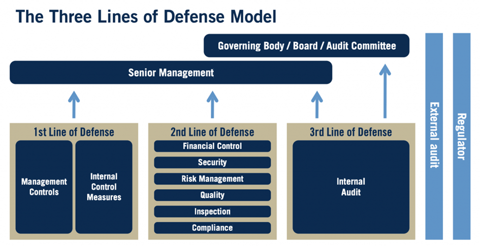 - Tuyến phòng thủ thứ ba: kiểm toán nội bộ, làm việc độc lập với phần còn lại của doanh nghiệp